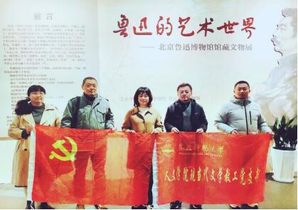 支部党员首先参观了安庆博物馆与北京鲁迅博物馆联合举办的鲁迅馆藏文物展。在鲁迅馆藏展馆中,大家参观了鲁迅部分手稿真迹,切身感受到鲁迅筚路蓝缕的创作之路及渗透在文章中救国纾难、启蒙国民的良苦用心。在鲁迅的收藏展馆中,党员们浏览了鲁迅收藏的原装书籍、木刻版画、石碑碑帖、中外绘画等珍贵藏品,更加全面深刻地了解和学习了这位文学巨匠及革命斗士的生平及心路历程。
