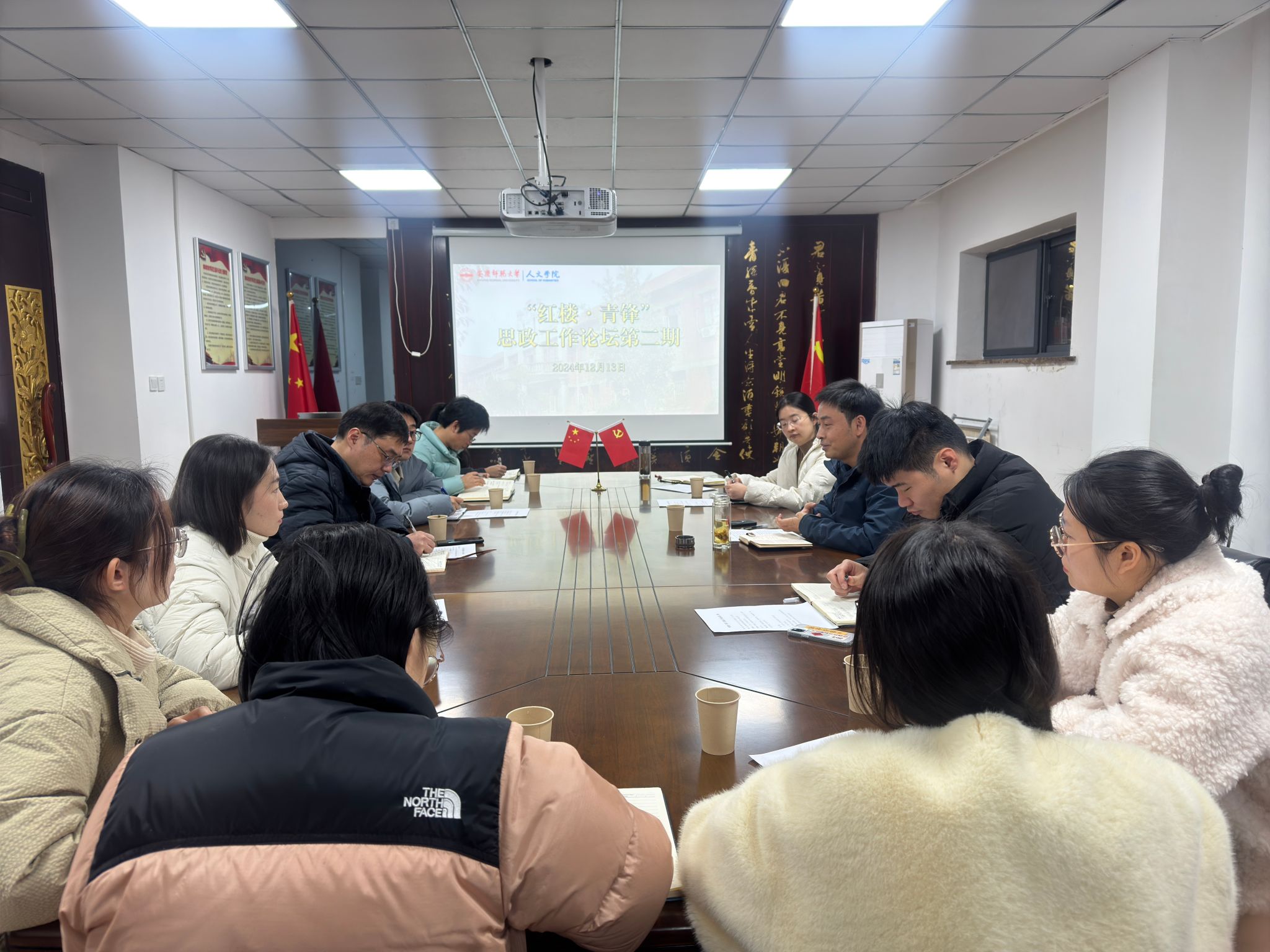 12月13日,安徽师范大学文学院党委副书记(主持党委工作)戴和圣应邀做客“红楼·青锋”思政工作论坛。论坛由Beat365中文官方网站党委书记王波主持,Beat365中文官方网站专兼职辅导员、学生党支部书记、团委负责人及主要学生骨干参加此次论坛。