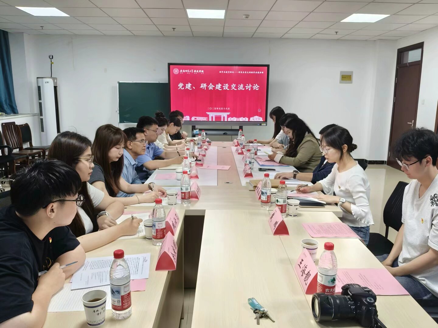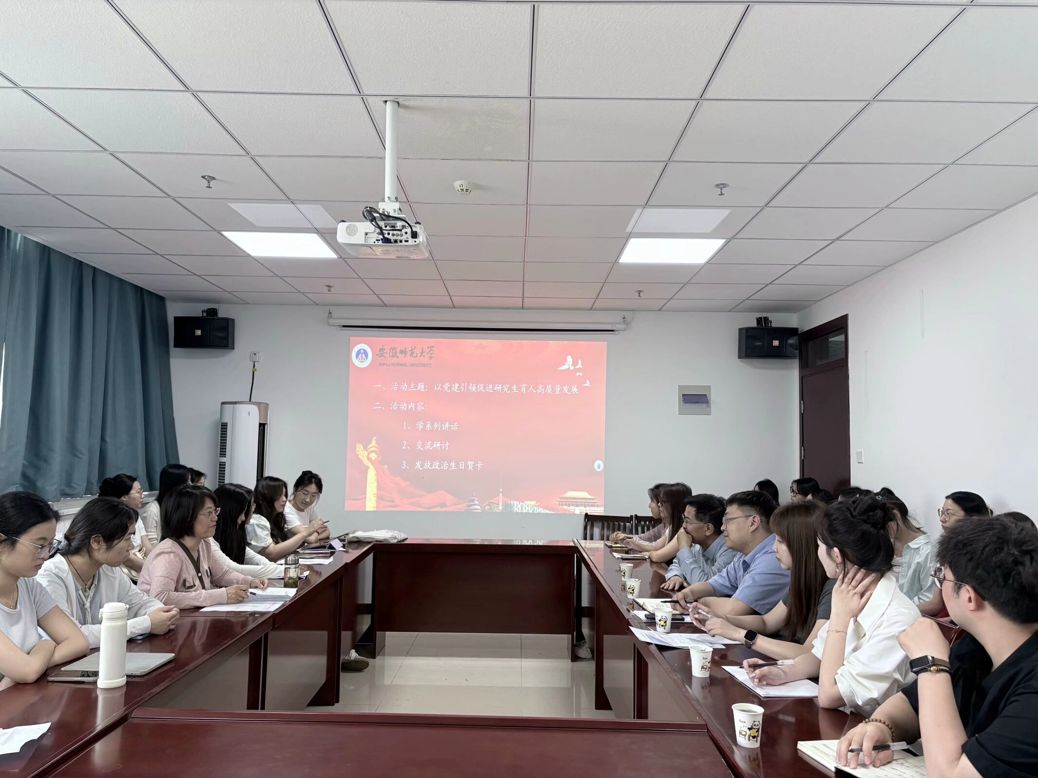 三个党支部以“党建引领促进研究生育人高质量发展”为主题展开,与会各党支部就深入贯彻中央八项规定精神学习教育开展情况、样板支部建设、党建品牌建设、党员示范作用发挥等内容进行了深度交流。交流期间,Beat365中文官方网站研究生党支部与安徽师范大学历史学院学术型研究生党支部共同签署了支部共建协议,Beat365中文官方网站研究生党支部还向5月入党的党员同志发放了政治生日贺卡。