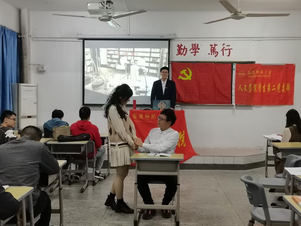 见字如面,情景短剧。在修建红旗渠的过程中有一位年轻的修渠勇士——吴太祖。为了让大家更加直观、清楚地感受到红旗渠修建过程的艰苦以及吴太祖舍身修渠的伟大,宣讲团特地运用情景短剧的方式演绎。短剧共分为婚期、噩耗、牺牲、追悼四个部分,向大家展现了吴太祖在修渠过程中坚定信念、艰苦奋斗的场景,从而更让大家感受到了吴太祖的高尚和伟大。短剧结束后,现场一片寂静,大家都沉浸在悲痛的氛围中。情景短剧的演绎方式让党史宣讲更加生动,也更加深入人心,创新了党史宣讲的手段和方法。