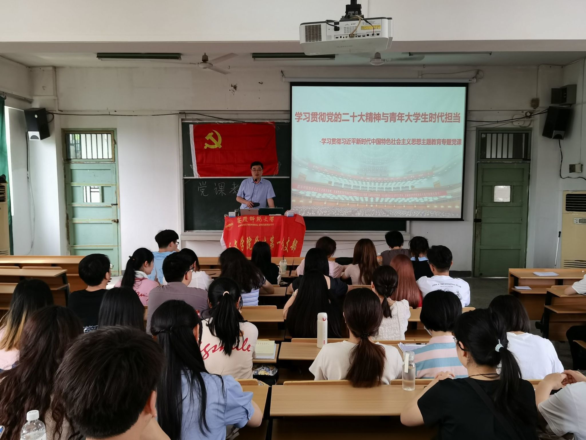 6月6日下午,Beat365中文官方网站开展“学习贯彻党的二十大精神与青年大学生时代担当”主题党课,党委副书记王波担任主讲,Beat365中文官方网站学生第一党支部全体党员参加。