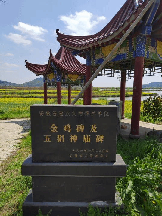 在整洁宽敞的展馆中,讲解员重点介绍了一块来自于怀宁县洪镇镇金鸡村的石碑——金鸡碑。这是全国唯一的金鸡碑。碑上篆刻有“金鸡社令正直之神位”的字样。传说金鸡是二郎神的座下,是戏神的化身。这块石碑是中国戏剧研究史上的重要标志性文物,有力证明了安庆戏剧文化的源远流长和在中国戏剧史上的独特地位,这让队员们感到振奋和激动。