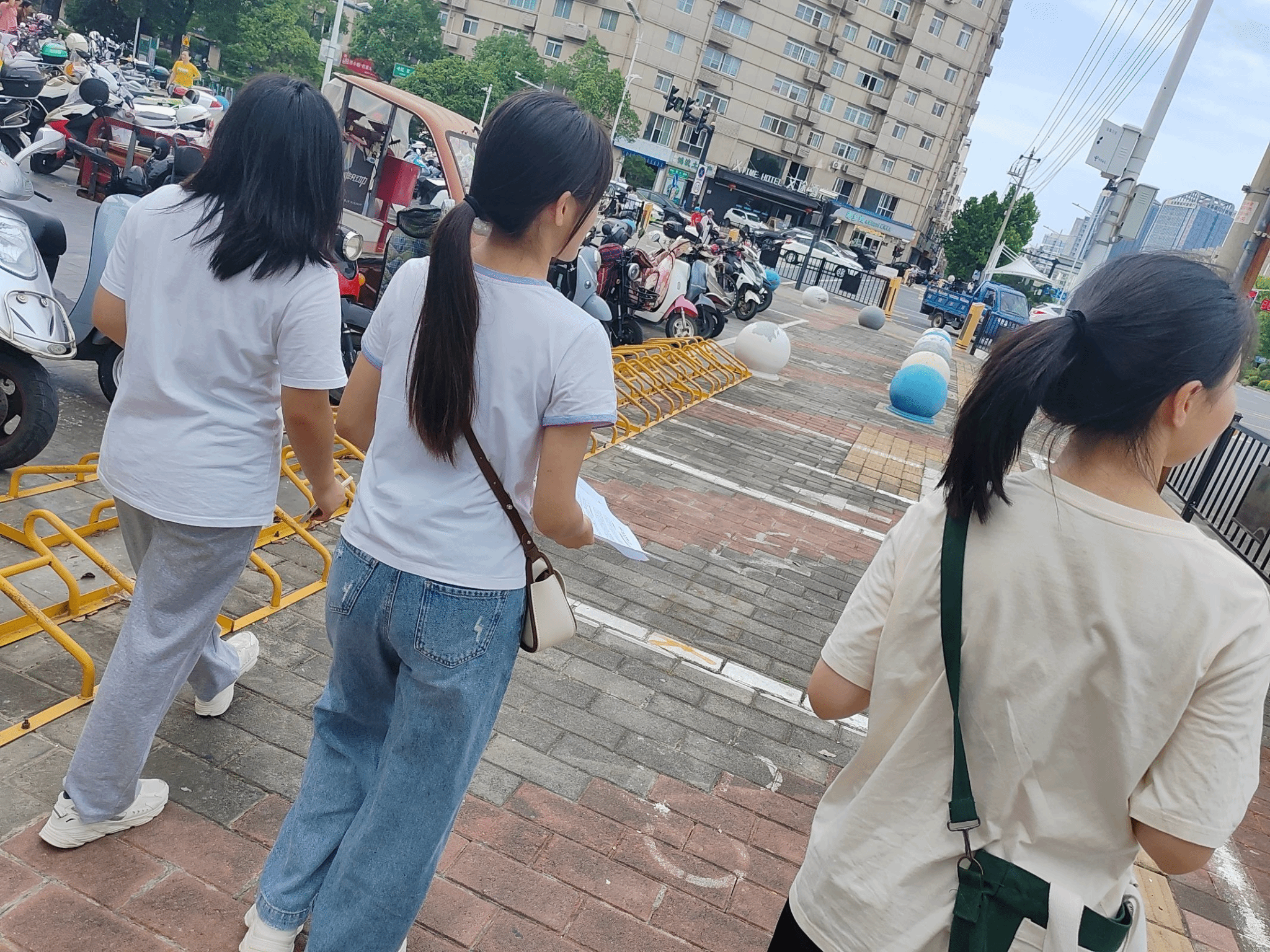 图为队员们分发推广普通话宣传稿