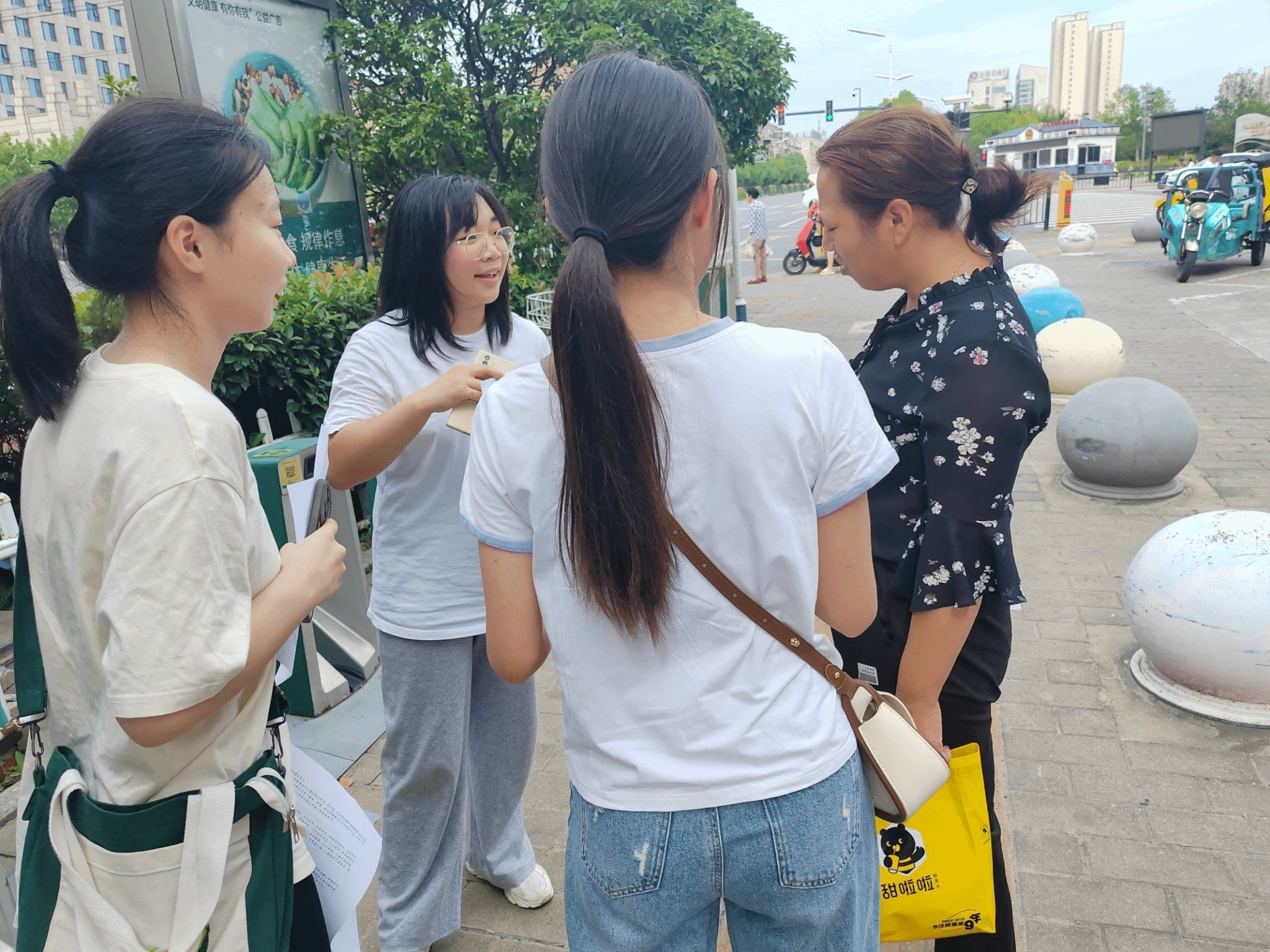 图为队员向行人介绍普通话来源