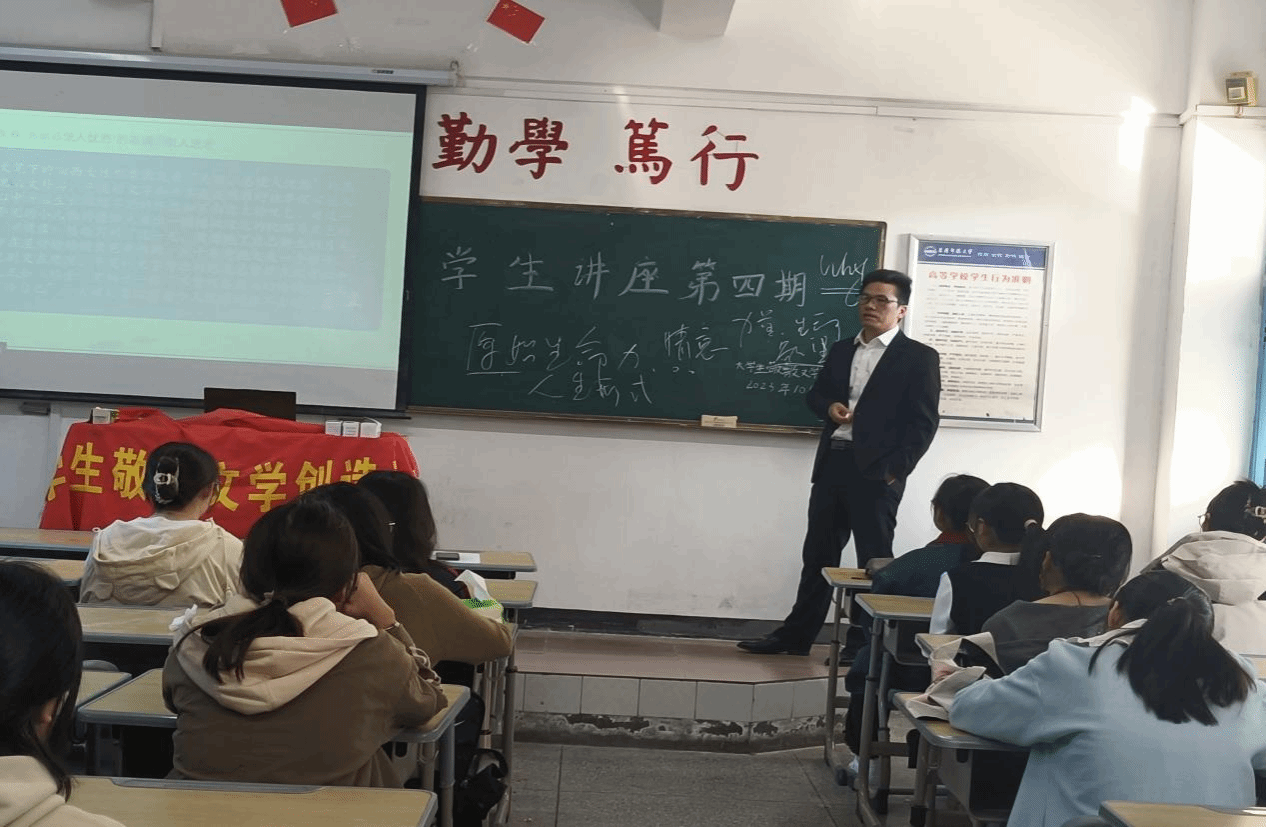 10月22日,大学生敬敷文学造社在教学楼311室举办第四期学生讲座,社长朱欣怡发表了题为“沈从文笔下的湘西女性形象及其审美意蕴”主题演讲。指导老师江飞教授莅临现场指导。