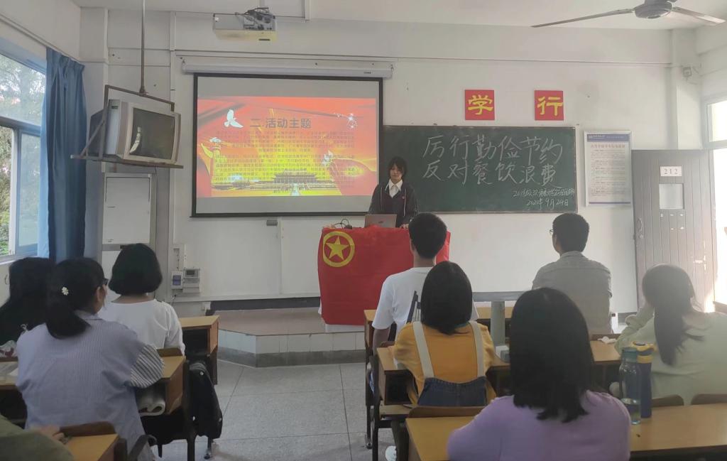 团委学生会统一开展主题学习活动,学生委员、团委委员、主席团全体成员以及各部门主要负责人到场,一同学习了勤俭节约的精神理念。各班团支部开展主题团日活动,通过展示PPT、播放视频等形式学习了习近平总书记相关讲话精神,宣扬了传承勤俭节约的传统美德。