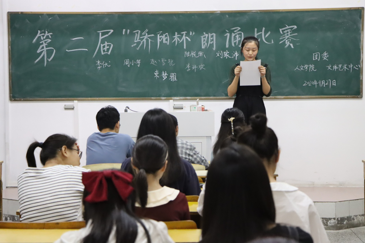 “金秋明月夜,诗声动菱湖”,9月27日晚上六点,Beat365中文官方网站于教学楼举办第二届“骄阳杯”抗击新冠疫情主题朗诵比赛初赛。本次比赛由Beat365中文官方网站团委文体艺术中心举办,2020级新生踊跃参与。本次比赛采用初赛复赛赛制,活动开始,主持人介绍了比赛细则,选手根据编号依次上台,先做一分钟的自我介绍,再在工作人员准备好的朗诵稿中选择其一进行朗诵,时长不超过三分钟。通过初赛,评审组决出参与复赛的选手,复赛将在10月23日举行。