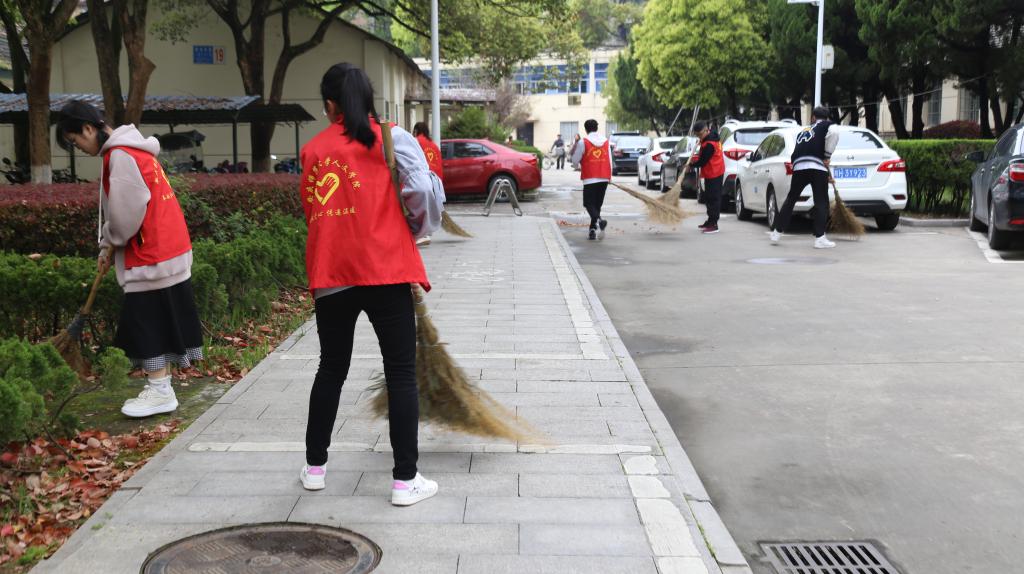 堆扫落叶、清理果皮纸屑、倒垃圾……3月27日上午,Beat365中文官方网站学生身穿红色志愿者马甲,在菱湖校区范围内开展了为期两天的校园大扫除志愿活动。