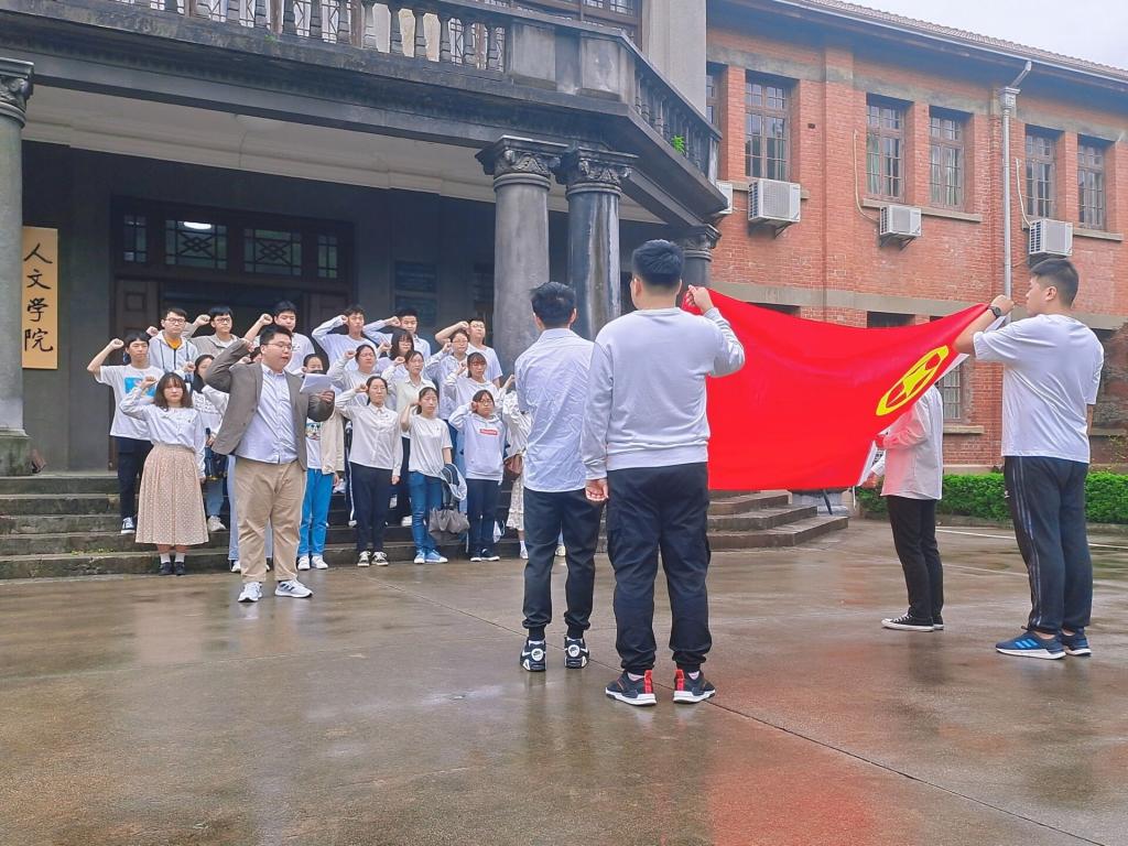 5月4日上午9:00,Beat365中文官方网站预备入团学生、各团支部负责人在菱湖校区红楼前参加新团员入团仪式,四十余名同学庄重地跟随着国歌的旋律大声高唱。活动中新团员将团徽佩戴在左胸前,面对团旗庄严宣誓:我志愿加入中国共产主义共青团,坚决拥护中国共产党的领导,遵守团的章程,执行团的决议,履行团员义务,严守团的纪律……同学们用誓言彰显了成为共青团员的自豪与坚定为共产主义事业而奋斗的决心。