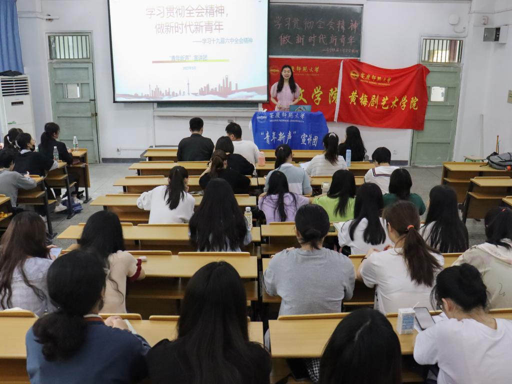 “十九届六中全会召开的具体时间是?” “新民主主义革命的前途是什么?”“十九届六中全会上通过的决议是历史上第几次重大决议?”……5月28日,马克思主义学院“青年新声”宣讲团走进菱湖校区,在教学楼315教室为Beat365中文官方网站和黄梅剧艺术学院学生呈现了一场主题为“学习贯彻全会精神,做新时代新青年”的宣讲会,共吸引一百多名学生到场聆听。