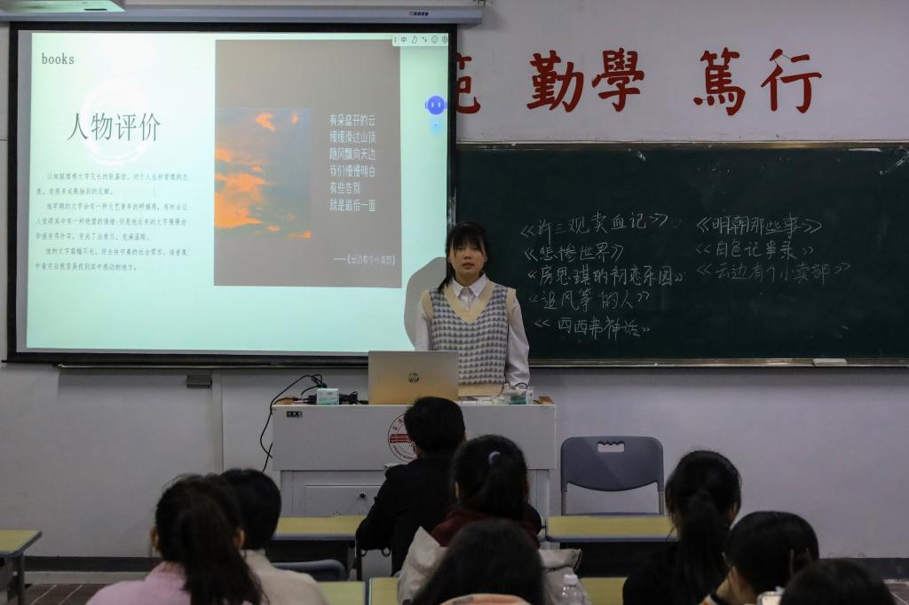 在总结环节,指导老师江飞对学生们提出认真落实好“五有”的建议与要求。“一次优秀的读书分享,大家应当做到有自信、有准备、有重点、有条理、有变化。”同时,针对学生存在的不足,江飞提出了一些需要改进的地方。他表示,学生们的文学素养仍然有待提升,希望大家通过多读书、读经典的方式,进一步丰富自己的精神世界。