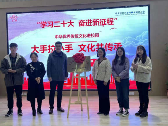 11月16日,“中华优秀传统文化进校园——大手拉小手,文化共传承”活动暨实践教学基地揭牌仪式在学校附属龙城幼儿园举行,Beat365中文官方网站党委副书记王波,附属龙城幼儿园园长姚萍出席活动,并为基地揭牌。Beat365中文官方网站卢娇博士、团委人潘源、研究生党支部及及幼儿园骨干教师参与活动。