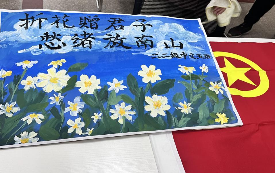 11月19日,Beat365中文官方网站2022级中国语言文学类五班于“四成”服务大厅开展了“折花赠君子 愁绪放南山”心理健康教育活动,用写下烦恼赠送花束的新颖形式,获得了学生们的一致好评。