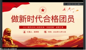 2021级汉语言文学五班团支书崔逸玮说:“‘不忘来时路,筑梦新征程’,在这一年半的时间里,我班团支部逐渐褪去当初的稚嫩与青涩,在征程上,我们不断完善支部建设、增强理论储备,不断积累经验,向着未来更好进发。”她向大家展示了扎实的基础团务,丰富多彩的特色活动,形式多样的团课和团日活动,给我们展现了一个积极向上,充满活力的团支部,班级团员充满青春朝气,为学院、为社会积极贡献青春力量。