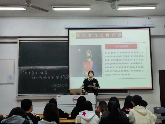 讲中华好故事,就要讲好中华民族伟大梦想精神。2022级中国语言文学类4班的王婧饱怀着壮志和激情呼吁当代青年:“青年需懂得‘青春不会因岁月的流逝而褪色,青春会以生命的绽放而出彩’的道理,听从时代的召唤,以‘乘风破浪会有时’的自信豪迈,以‘功成必定有我’的使命担当,肩负自信、坚韧、奉献。以青春之名,赴时代之约,与时代同发展,与祖国共奋进,去实现伟大的中国复兴梦!”