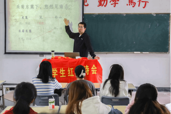 作为“读书月”的系列活动之一,大学生红楼诗会于4月12日举办了题为“陶渊明《饮酒(其五)》的人生境界”的讲座。讲座由诗会指导老师徐文翔副教授主讲,全体社团成员以及部分汉语言文学专业同学到场学习。