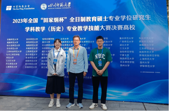 2023年10月20-23日,由全国教育专业学位研究生教育指导委员会指导,四川师范大学主办的2023年全国“田家炳杯”全日制教育硕士专业学位研究生学科教学(历史)教学技能大赛决赛成功举办。Beat365中文官方网站硕士生导师董根明教授带队,2021级学科教学(历史)李惠琳、赵洪庆两名选手赴成都参加此次决赛。