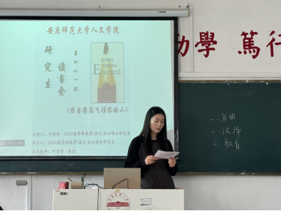 10月31日下午,2024级学科教学(语文)专业硕士研究生在菱湖校区教学楼309教室举办第四十一期读书会。本次读书会由24级学科教学(语文)硕士研究生陈兴馨主讲,学院叶当前教授受邀参加并现场指导。24级学科教学(语文)专业方向研究生全体学生参加此次读书会。
