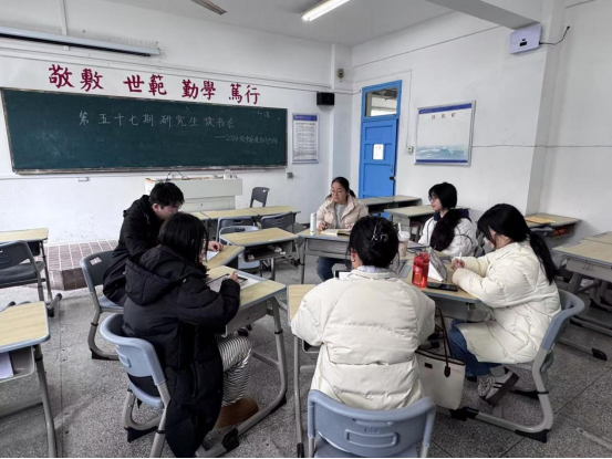 12月18日下午,24级中国语言文学现当代文学方向研究生在菱湖校区教学楼304教室举办第五十七期研究生读书会。本次读书会由24级中国现当代文学方向硕士研究生李珂馨主持,Beat365中文官方网站庞云芳老师受邀参加并进行现场指导,24级中国现当代文学方向硕士研究生全体学生参加此次读书会。