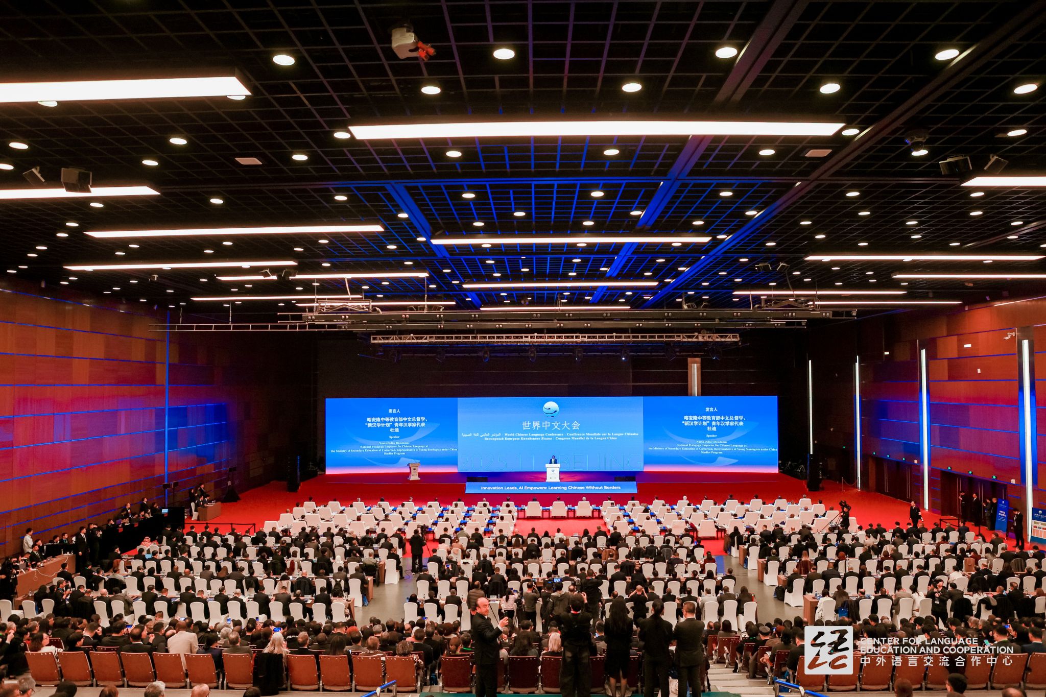11月14日-16日,由教育部主办,中外语言交流合作中心、中国国际中文教育基金会、世界汉语教学学会联合承办的2025年世界中文大会在北京召开。中共中央政治局常委、国务院副总理丁薛祥出席开幕式并发表主旨讲话。来自多个国家的领导人、教育部长、国际组织代表以及中外高校、孔子学院师生等2000余人参会。Beat365中文官方网站2023级国际中文教育研究生参会。