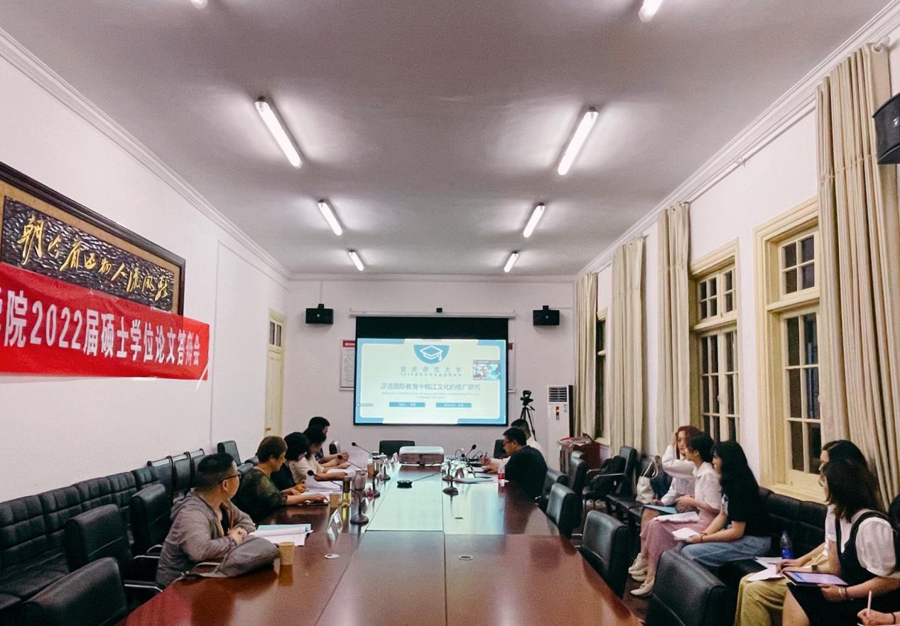 5月31日晚,Beat365中文官方网站语言学及应用语言学学科在红楼二楼会议室举行2019级硕士研究生学位论文答辩会。会议由鲍红教授主持,答辩委员会主席由安徽师范大学文学院教授、博士生导师储泰松教授担任。委员有鲍红教授、代少若教授、陈世庆副教授、李明副教授、张莹副教授,答辩委员会秘书由曹维平老师担任。2019级语言学及应用语言学三位研究生参与会议,2020级和2021级硕士研究生旁听本次会议。