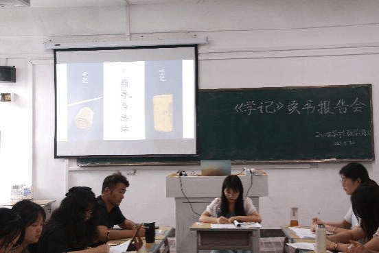 本次读书会分为主讲人分享阅读体会、学生讨论交流、指导老师评议三个环节,阅读书目为《学记》。会始,四位主讲人或根据自身经历,或结合实事,对《学记》文本进行了解读。姚瑶同学围绕《学记》中的教育目的、教育制度、师生关系三方面,剖析《学记》蕴含的“立德树人”教育主张。龙慧婷同学介绍了《学记》中的教学原则和教学方法,着重讲解了关于“志”的教育思想。董亚芳同学联系《学记》和当下语文教育,指出《学记》教育思想和教育教学方法对当前语文教学深入贯彻新课标理念有着强大的指导作用。汪韦仙同学主要就《学记》中的教育目的、教育作用、教育原则发表看法,强调专业研究生要将经典中经过历史和实践检验过的优秀教育思想吸收学习,并把它们运用在实际的教学过程中。随后,同学们就主讲同学的阅读分享展开了热烈的讨论与交流。
