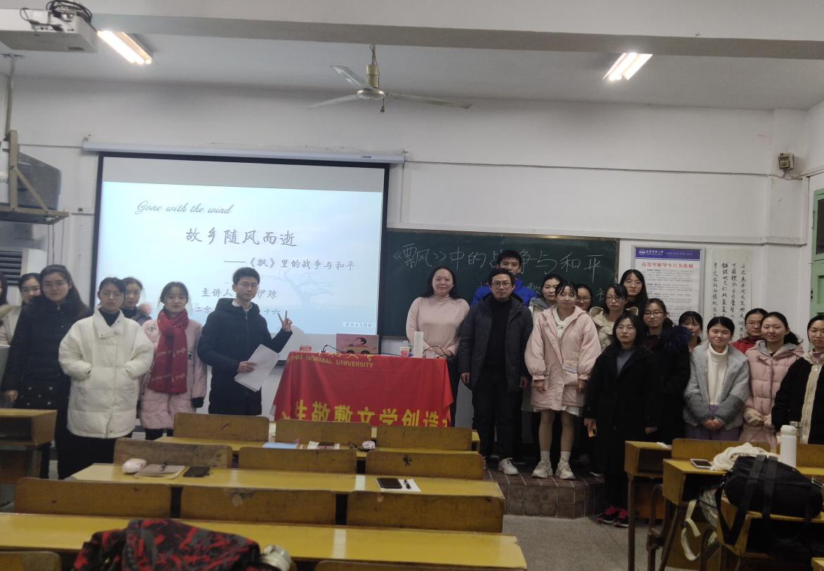 室外寒气逼人,室内如沐春风。12月16日下午,Beat365中文官方网站吴伊琼博士应大学生敬敷文学创造社的邀请在菱湖校区教学楼208教室举办了一场题为“故乡随风而去——《飘》里的战争与和平”的学术讲座。讲座由金松林教授主持,中文和历史专业60余位同学参加了本次活动。