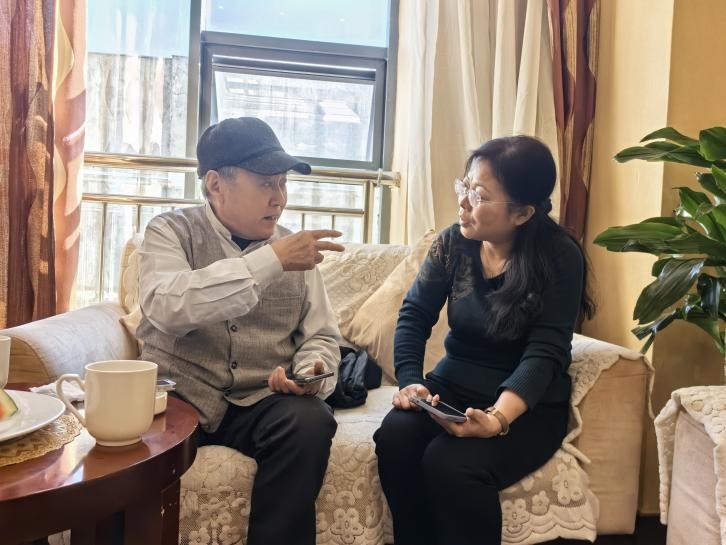 随后,调查组前往岳西县田头乡高腔剧社进行调研,当地高腔传承人向大家表演了传统岳西高腔——围鼓坐唱。围鼓坐唱是岳西高腔的表演形式之一,演唱者不用妆扮,分唱剧中角色,各执打击乐器,由鼓板师领头,一唱众和。调查组发现,围鼓坐唱的曲词中蕴含大量的方言唱词,是研究岳西方言的绝佳语料。下午,调查组前往岳西高腔县非遗传承人家中采录方言语音资料,并在其他几位发音人的配合下,顺利完成了语音采录工作。