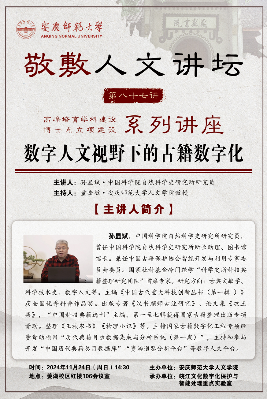 【敬敷人文讲坛(87)】数字人文视野下的古籍数字化