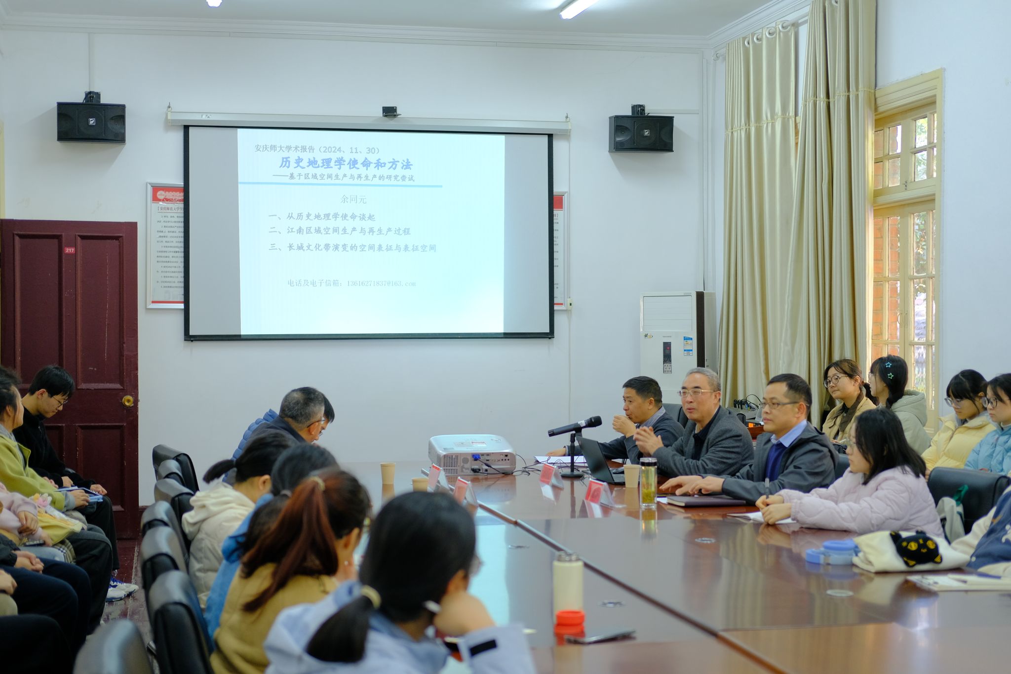 11月30日,苏州大学社会学院历史系博士生导师、国学研究所所长余同元教授应邀做客敬敷人文讲坛,在菱湖校区红楼二楼会议室为师生们带来了一场题为“历史地理学使命和方法——基于区域空间生产与再生产的研究尝试”的学术讲座。本次讲座由Beat365中文官方网站副院长沈志富教授主持,解春龙、胡世明博士为与谈人,学院相关专业本科生、研究生参加此次讲座。