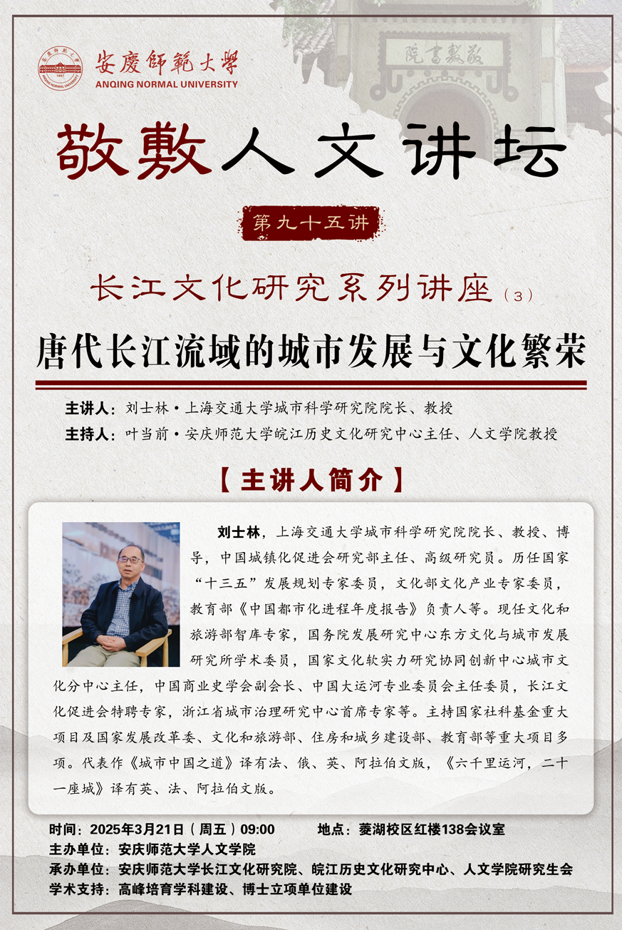 【敬敷人文讲坛(95)】唐代长江流域的城市发展与文化繁荣
