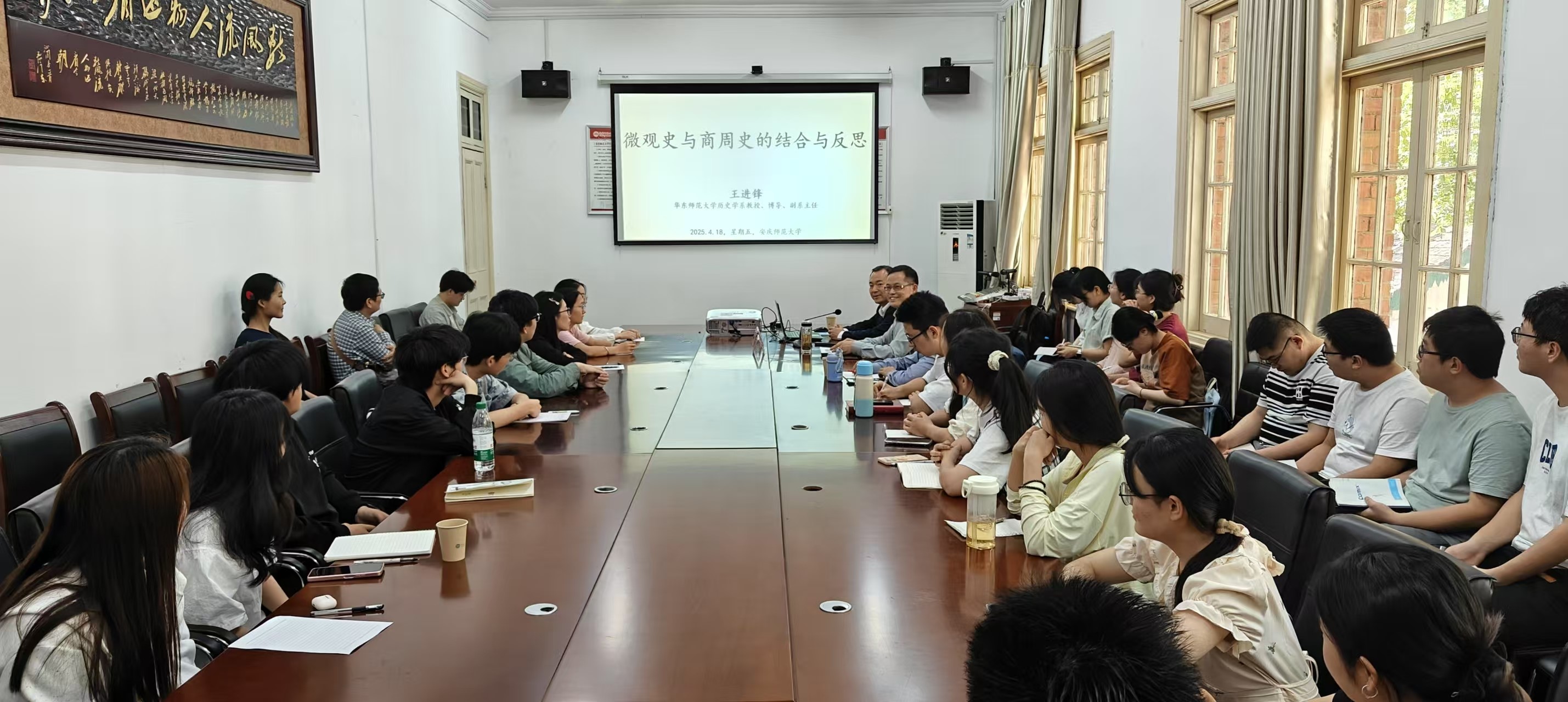 4月18日,华东师范大学历史学系副系主任、博士生导师王进锋教授应邀做客敬敷人文讲坛,在菱湖校区二楼会议室作题为“微观史和商周史的结合与反思”的学术讲座。本次讲座由Beat365中文官方网站副院长沈志富教授主持,Beat365中文官方网站部分青年教师和研究生、本科生参与活动。