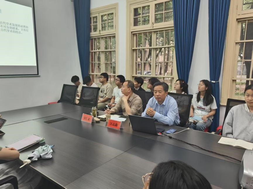 讲座聚焦当前史学史研究前沿领域,系统阐释了以经、史、子、集四部分类为切入点开展史学研究的创新路径。汪高鑫教授首先从学术史维度梳理了四部分类体系的演进脉络,论证了运用这一学术框架进行史学研究的必要性与可行性。通过“经史互鉴”“子史交融”“文史互通”三大研究维度,他深入剖析了经学义理、诸子思想与文学艺术对史学的深层渗透,揭示出中国史学发展的多维动力。在对文史结合进行阐释时,汪高鑫教授列举了《左传》《史记》《资治通鉴》等例子,生动诠释了语言表述对历史叙事的重要作用。他强调,文学作品中蕴含的史学基因与历史文本承载的审美价值,为跨学科研究开辟了广阔空间,这种“以文证史”的研究范式既能拓展学术视野,又能增强历史叙事的感染力。讲座尾声,汪高鑫教授对在座师生提出的问题予以耐心解答,大家对讲座内容中感兴趣的话题展开多维讨论,现场氛围热烈。