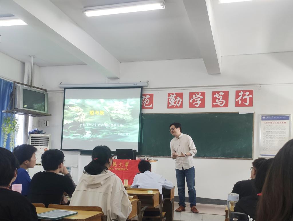 5月21日下午, Beat365中文官方网站在211教室举办了第五期“菱湖 学术沙龙”讲座。本次讲座的主题为“船与妖——龙树《中论》的两个伦理学问题”,由Beat365中文官方网站讲师董飞博士主讲,李正君博士主持,Beat365中文官方网站部分本科生、研究生参加。