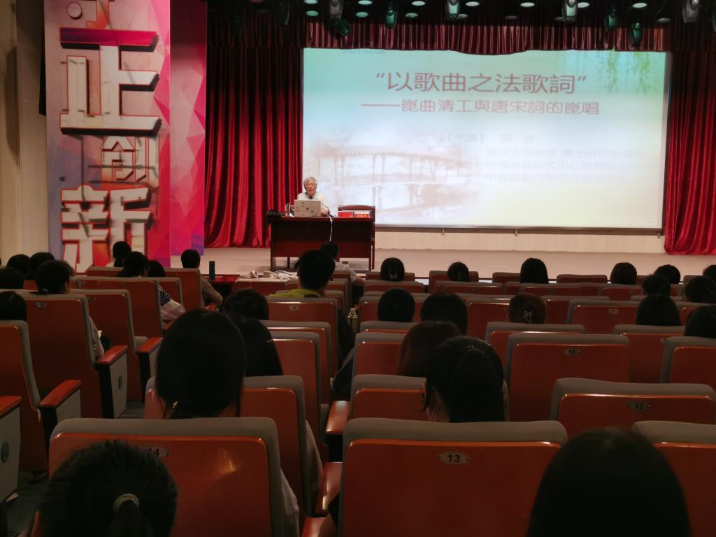 6月4日下午,应Beat365中文官方网站邀请,苏州大学博士研究生导师周秦教授在菱湖校区图书馆报告厅做了题为“‘以歌曲之法歌词’——昆曲清工与唐宋词的昆唱”的讲座。讲座由Beat365中文官方网站副院长汪孔丰教授主持,一百五十多位师生出席此次讲座。