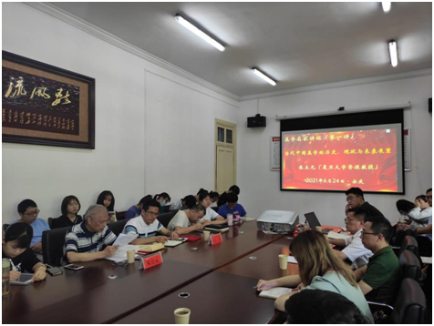 最后,江飞教授对本次讲座做了总结,并提出中国当代美学在论争中前进、探索中发展,当下中国美学呈积极良好的发展态势,美学进入到一个多元共存、共同发展的新时代。作为美学研究者和学习者,应当向朱老师等美学名家们学习,进行创造性转化和创新性发展。讲座结束后,朱立元教授还与中文专业的部分教师、研究生进行了学术座谈交流。