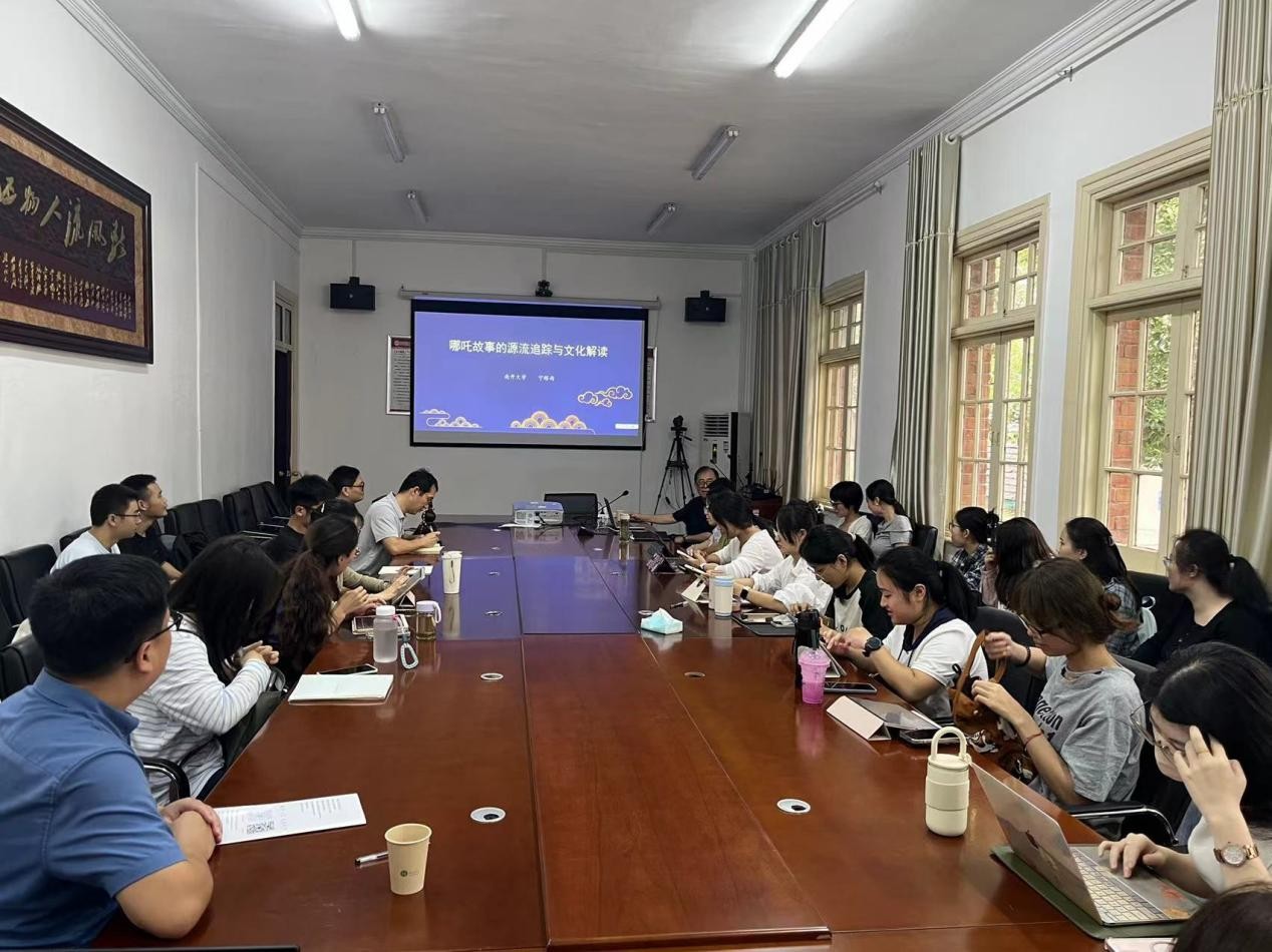 宁稼雨教授分别从哪吒形象及其传播、哪吒故事的中国化走势与解读理论以及哪吒故事的中国文学位移过程等三个方面,深入浅出地阐释了哪吒故事与其他中国神话的不同,以及哪吒神话原型的跨国“文学移位”现象。宁稼雨教授指出,哪吒形象源自印度,但是进入中国之后随着历史与时代变迁,不断被赋予了各种中土色彩;在中国文学园地中,中国神话也产生了与西方神话同样的“文学移位”效应,但与西方将神话作为“文学种子”的“向后看”式的研究不同,中国是以神话故事为一种回溯的“向前看”式的研究。他强调,中国叙事文化学的研究,应立足中国文化本位,“以中为体”,追求理论与文本的有机融合,切忌单纯地以西方理论比附中国古代叙事文学作品。讲座末尾,宁稼雨教授与在座师生就相关问题展开了深入交流,现场氛围十分热烈。
