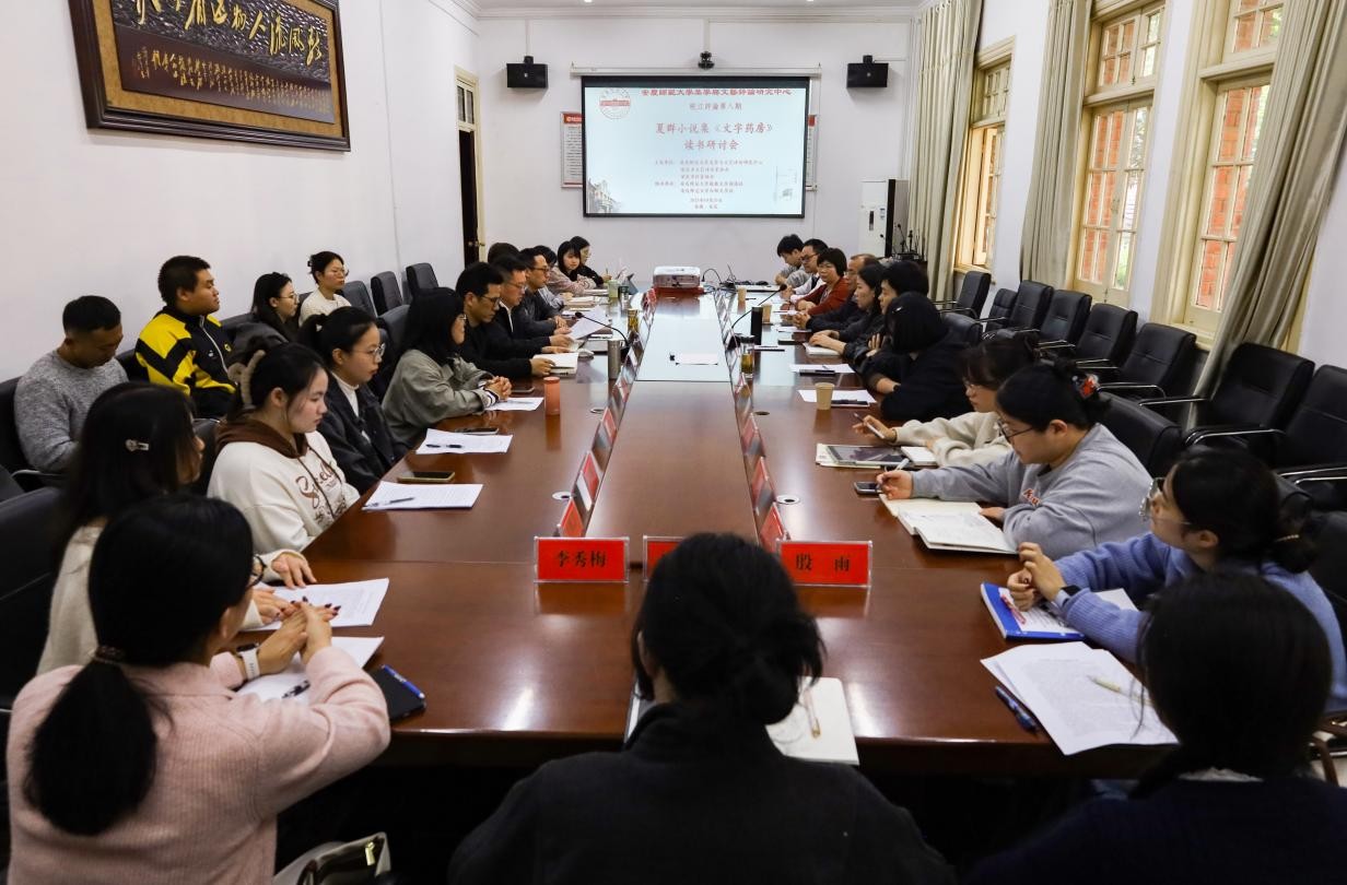2025年10月29日下午,Beat365中文官方网站美学与文艺评论研究中心、安庆市文艺评论家协会和安庆市作家协会共同主办的皖江评论第八期“夏群小说集《文字药房》读书研讨会”在红楼二楼会议室成功举办。巢湖学院文学与传媒学院教授、评论家陈振华,安庆市作家协会主席、作家储劲松,《安徽文学》编辑部主任、作家夏群应邀参加。安徽省文艺评论家协会主席、安徽省作家协会副主席、中心主任江飞教授,中心副主任金松林教授,研究员冯慧敏副教授、徐先智副教授,以及Beat365中文官方网站中国现当代文学专业、文艺学专业部分硕士研究生和部分本科生等30余人参与了此次研讨会。会议由中心副主任陈宗俊教授主持。