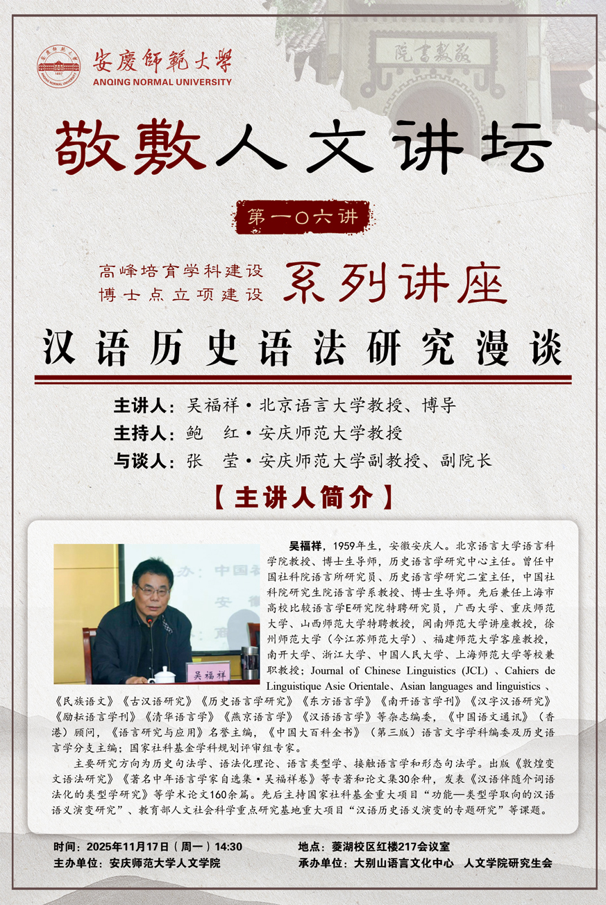 【敬敷人文讲坛(106)】汉语历史语法研究漫谈