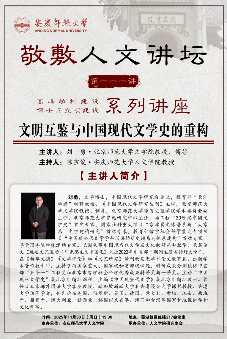 【敬敷人文讲坛(111)】文明互鉴与中国现代文学史的重构
