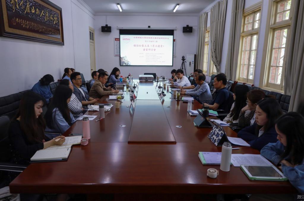 会议开始,陈宗俊教授对三位嘉宾进行了简短的介绍。之后在作品交流讨论环节,大家就《草木朴素》的文化内蕴、写作策略、语言特点等方面进行了积极的探讨。大家认为,《草木朴素》一书中弥漫着一种古意,蕴含着韵律之美、自然之美、思想之美与人情之美,诉说着对万物的敬意与感恩,也诉说着自己的苟且与谦卑;文章老厚离不开对文章经纬的苦心经营,文章经纬在文化语境上指向纵向的传统,在个人语境上指向个人的追问,在写作本体上指向文章的做法;作家承继古籍中先民的草木情感,将草木的一呼一吸都写了出来,是一种对现实世界的喧嚣与迷茫的抵抗。此外,大家就《草木朴素》是否存在模式化写作、如何写作散文等问题进行了热烈的讨论。整个读书会现场气氛活跃,学术氛围浓厚。最后储劲松对师生们的发言表示了感谢,对研讨会上提出的相关问题一一作了回应,并认为当代散文作家要有重新揭示中国文化传统的意识,担负起一代人应有的责任。会议结束后,全体师生在红楼前合影留念。