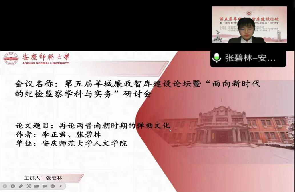 11月26日,第五届羊城廉政智库建设论坛暨“面向新时代的纪检监察学科与务实”研讨会在广州大学召开。受疫情影响,此次论坛以“线上+线下”的方式进行,来自浙江大学、中国政法大学等高校的众多学者及地方纪委委员、检察官等共60余人参会。Beat365官网教师李正君和2022级中国史方向研究生张碧林应邀参会。