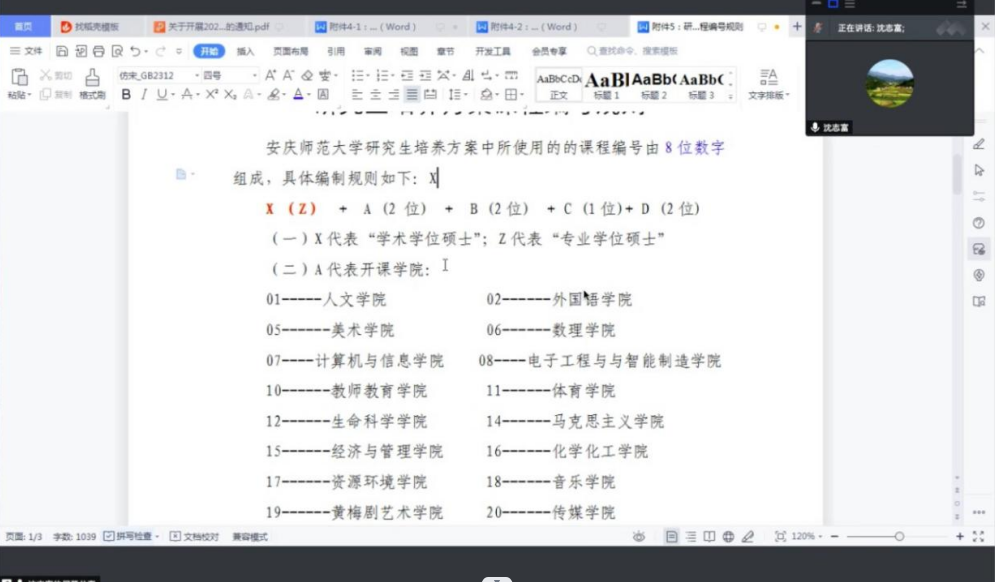 12月2日晚,Beat365中文官方网站通过线上方式召开2023版研究生培养方案修订工作推进会。中国语言文学、中国史、学科教学(语文)、学科教学(历史)、汉语国际教育等五个学位点研究生培养方案制(修)订工作小组成员参加会议,副院长沈志富主持会议。