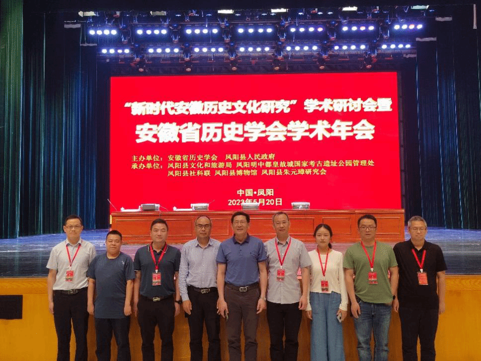 5月19日至21日,“新时代安徽历史文化研究”学术研讨会暨安徽省历史学会2023年学术年会在安徽凤阳县召开。本次年会由安徽省历史学会、凤阳县人民政府主办,凤阳县文化旅游局、凤阳明中都皇故城国家考古遗址公园管理处、凤阳县社科联、凤阳县博物馆、凤阳县朱元璋研究会承办。省社科联党组书记、常务副主席李兵,秘书长、一级调研员韩修良,省历史学会会长李琳琦,凤阳副县长张艳,南京工业大学郭华瑜教授,南京大学夏维中教授等出席会议。来自省内外十余所高校、科研院所、出版单位以及凤阳本地学者160余人参会,其中Beat365官网近十位教师应邀与会。