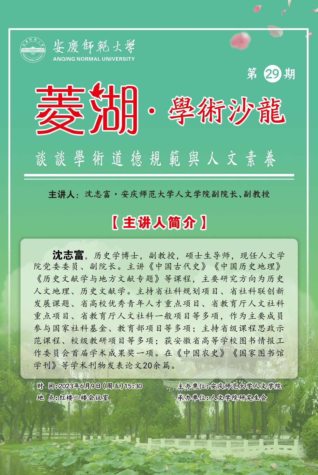 【菱湖学术沙龙(29)】谈谈学术道德规范与人文素养