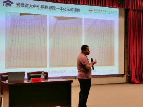 紧接着第二场呼应时下热点——大中小课程思政一体化问题。“安庆在哪里?”“你是安庆哪里人?”……随着一系列的发问,Beat365中文官方网站讲师、硕士研究生导师郝佩林博士从档案史料的独特视角,以档案展示的形式作了《档案中的安庆新中国史图像》主题讲座,向七中师生们直观地呈现出安庆工商业社会主义改造的历史。