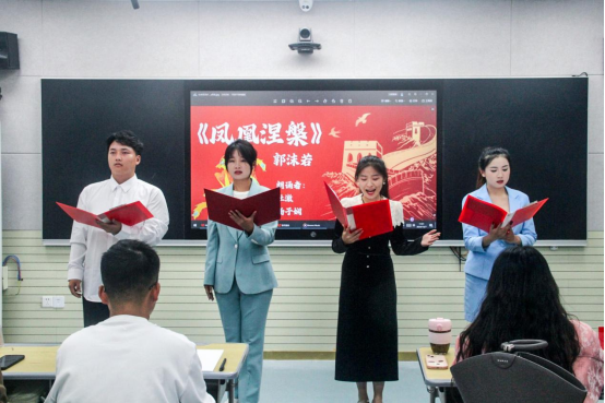 比赛分为初赛和决赛两个阶段。初赛阶段,选手们纷纷登台,用各自独特的朗诵风格和技巧,赢得了现场观众的阵阵掌声。经过激烈的角逐,优秀选手脱颖而出,进入决赛阶段的较量。决赛现场更是精彩纷呈,选手们不仅展示了高水平的朗诵技巧,还通过音乐、服装、道具等辅助手段,将诵读内容演绎得淋漓尽致,赢得了评委和观众的一致好评。复赛现场,来自传媒学院的徐梓豪、柳徐耀、王梓璇和高晴晴用抑扬顿挫的声音诵读着《可爱的中国》,微微发颤的声线诉说着祖国久经磨难的屈辱,高亢的声调发出振聋发聩的呐喊。他们振臂高呼,那是对光明前路的渴求,更是对祖国美好未来的殷切期盼。