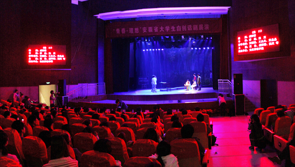 “青春•理想”安徽省大学生自创话剧比赛启动于今年3月,由省教育厅、省委宣传部、团省委共同承办。学校高度重视本次比赛,专门成立了领导小组,党委书记何小祥亲自挂帅担任组委会主任,院长朱士群和副院长闵永新、张群、汪时珍等领导多次组织召开推进会和研讨会,团委、教务处、学生处、现代教育技术中心等相关部门从经费、人力、物力等方面给予了大力支持,文学院具体承担了排演任务。