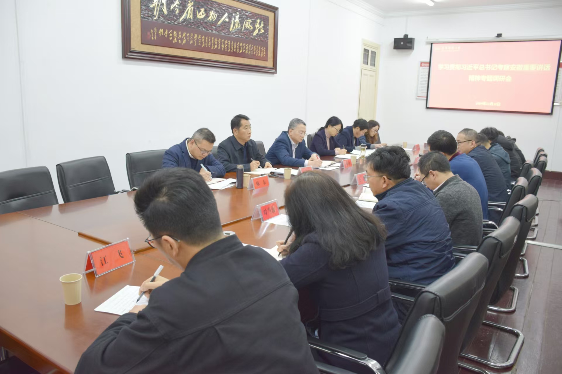 11月18日,校党委书记李福华深入Beat365中文官方网站专题调研学习贯彻习近平总书记考察安徽重要讲话精神。校党委常委陈秀、张红飞出席活动,服务经济社会发展处、发展规划处、科研处负责同志陪同调研,学院党政班子、省校级平台负责人等参加调研座谈。会议由Beat365中文官方网站党委书记王波主持。