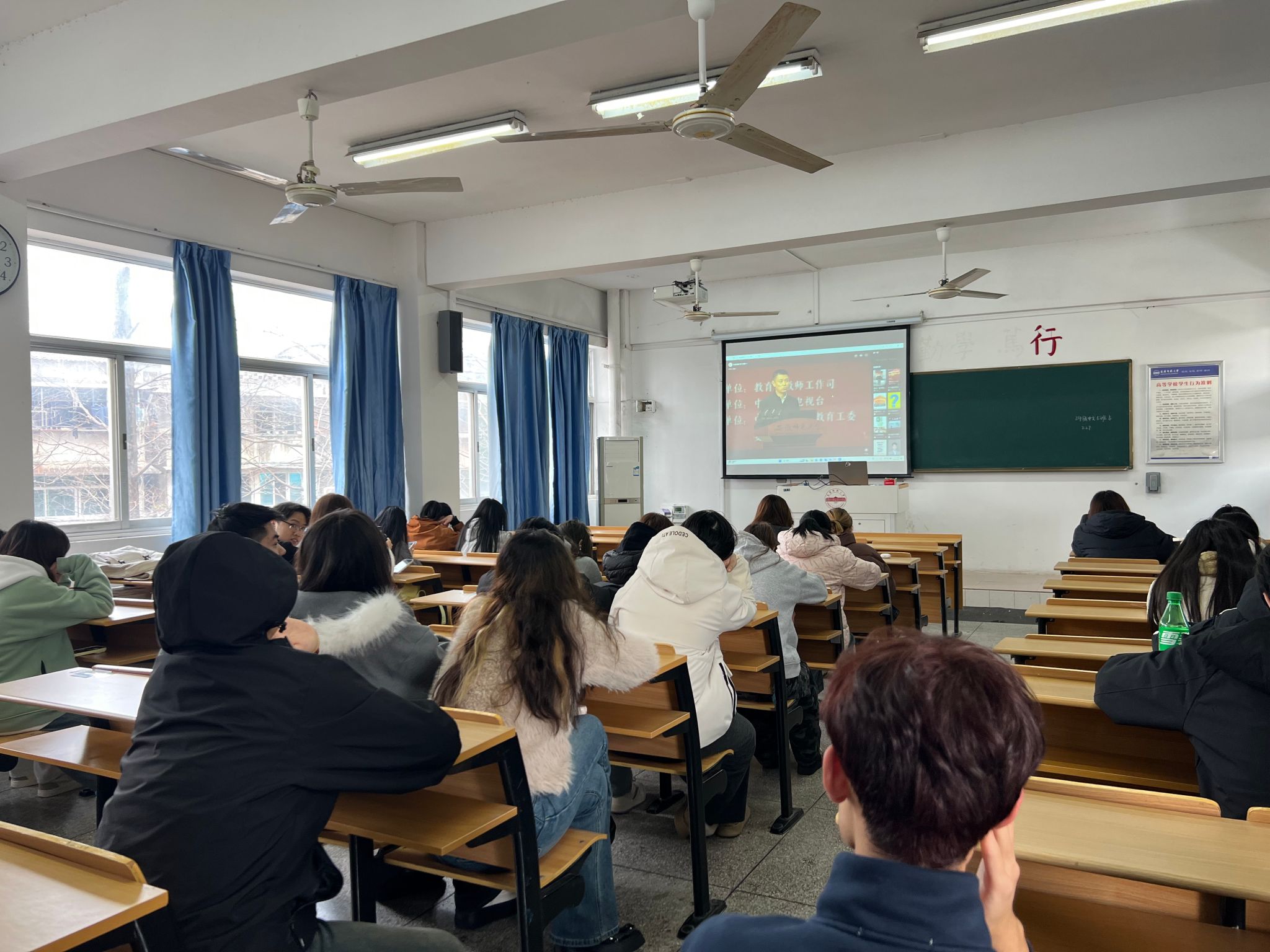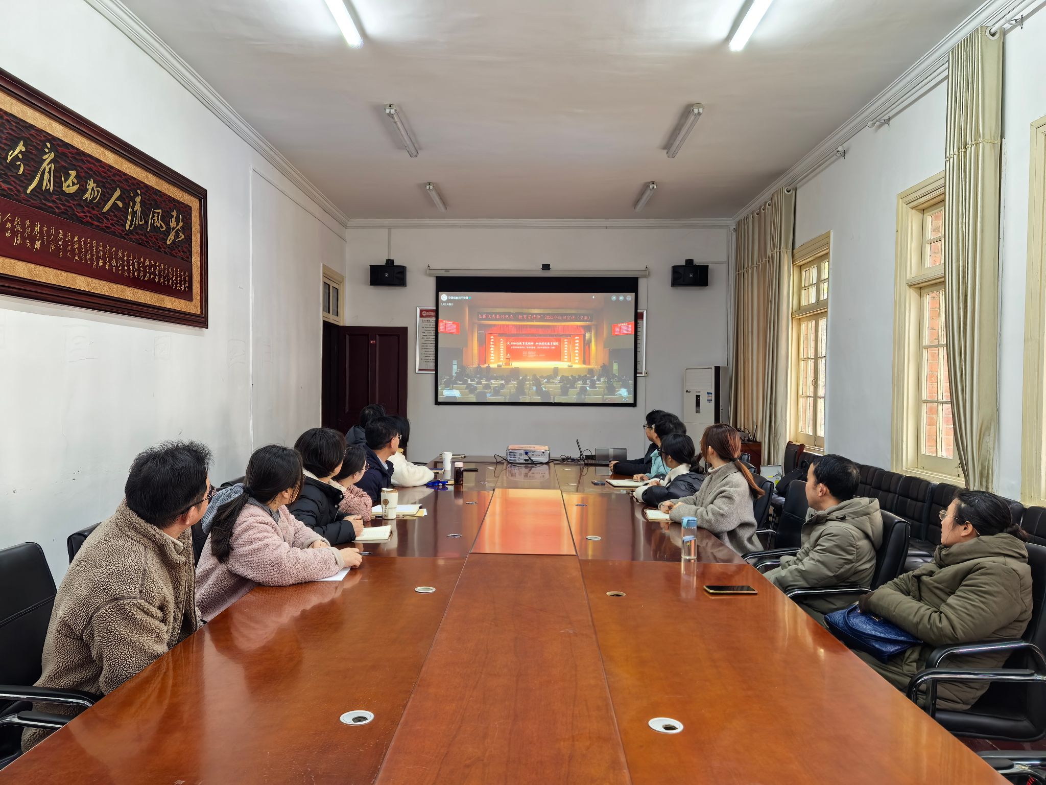 为深入贯彻落实教育部关于弘扬教育家精神的号召,响应学校党委教师工作部部署,2月27日下午,人文学院组织师生观看全国优秀教师代表“教育家精神”2025年巡回宣讲活动。